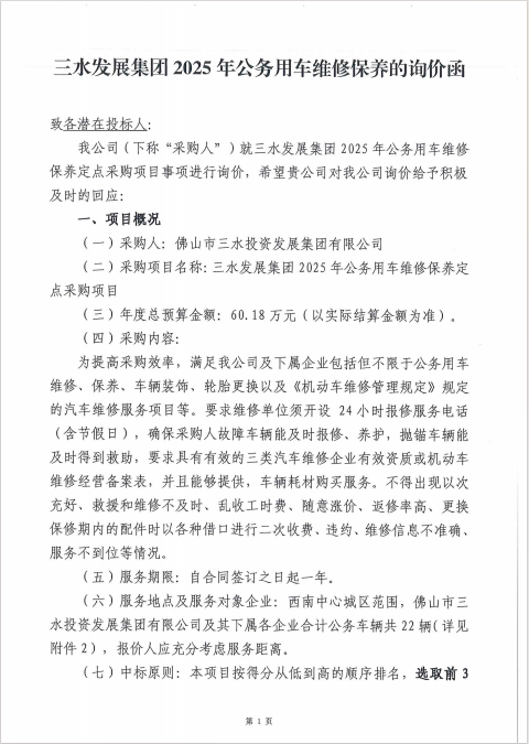 PA视讯集团游戏2025年公务用车维修保养定点采购项目询价文件附件文件