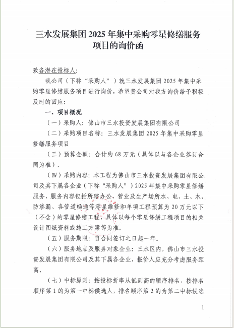 PA视讯集团游戏集团2025年集中采购零星修缮服务项目询价文件