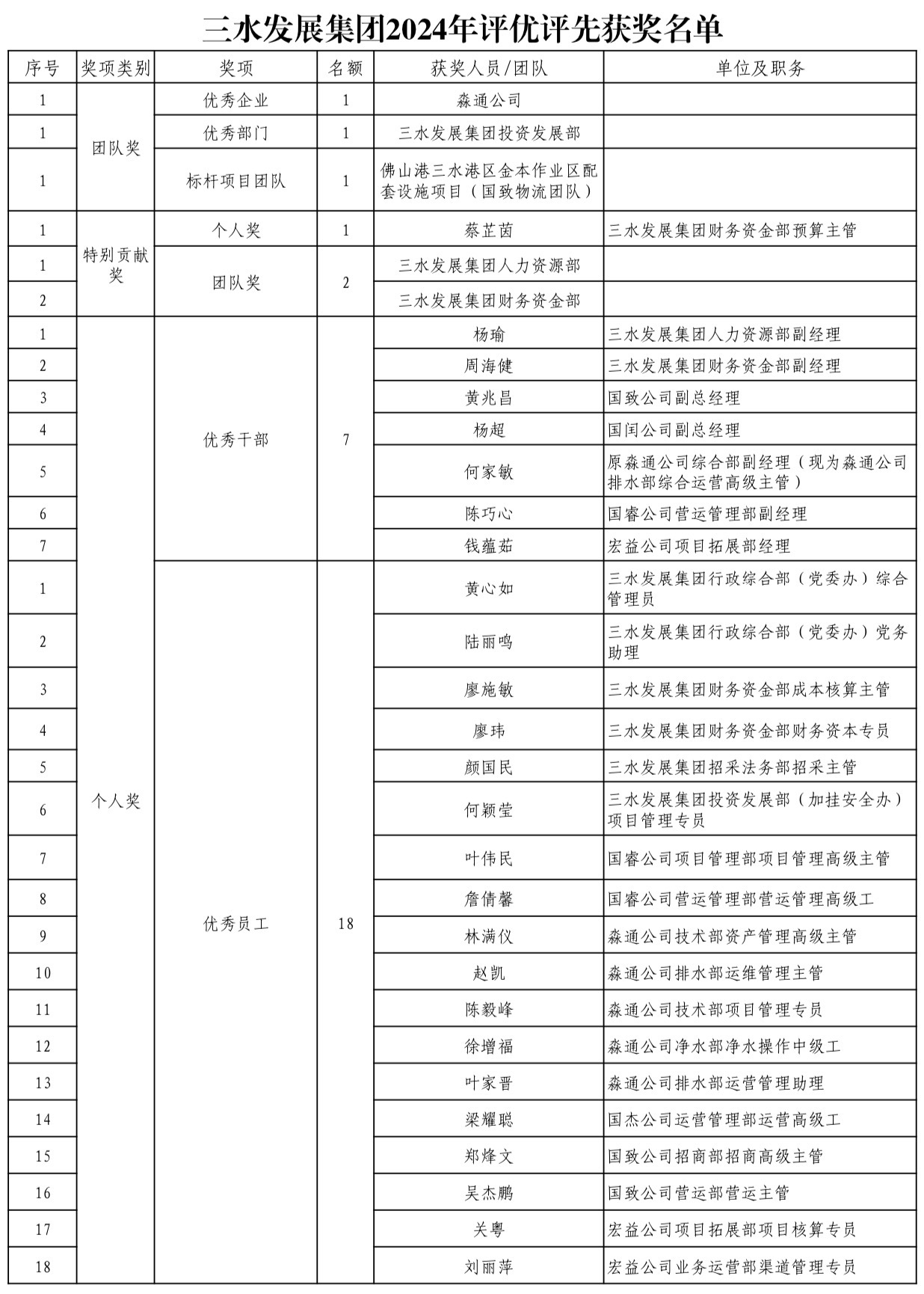 根据《关于开展PA视讯集团游戏集团2024年评优评先工作的通知》(三发展通〔2025〕2号)精神,经研究,现将PA视讯集团游戏集团2024年度评优评先获奖名单进行公示。