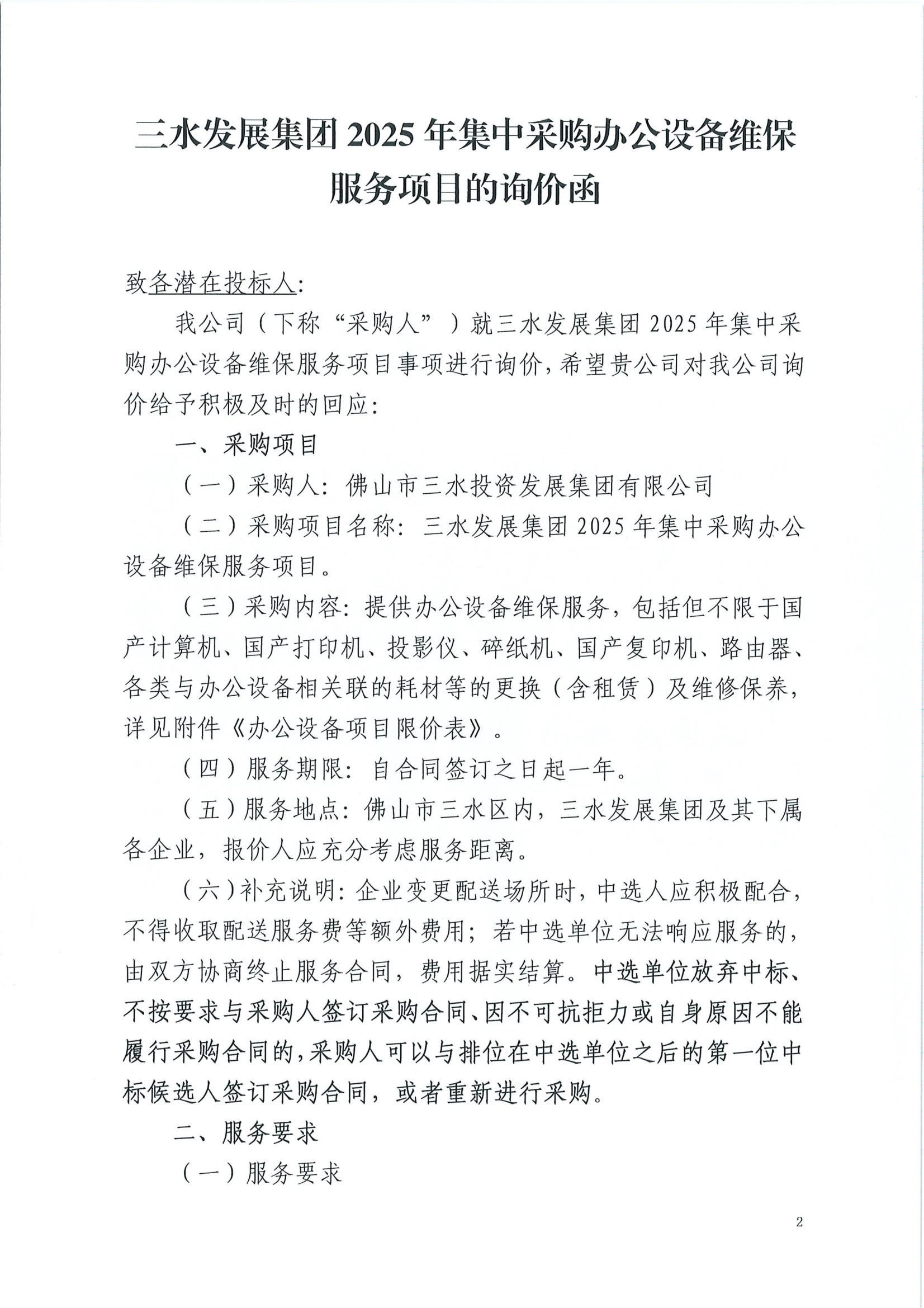 PA视讯集团游戏集团2025年集中采购办公设备维保服务项目询价文件