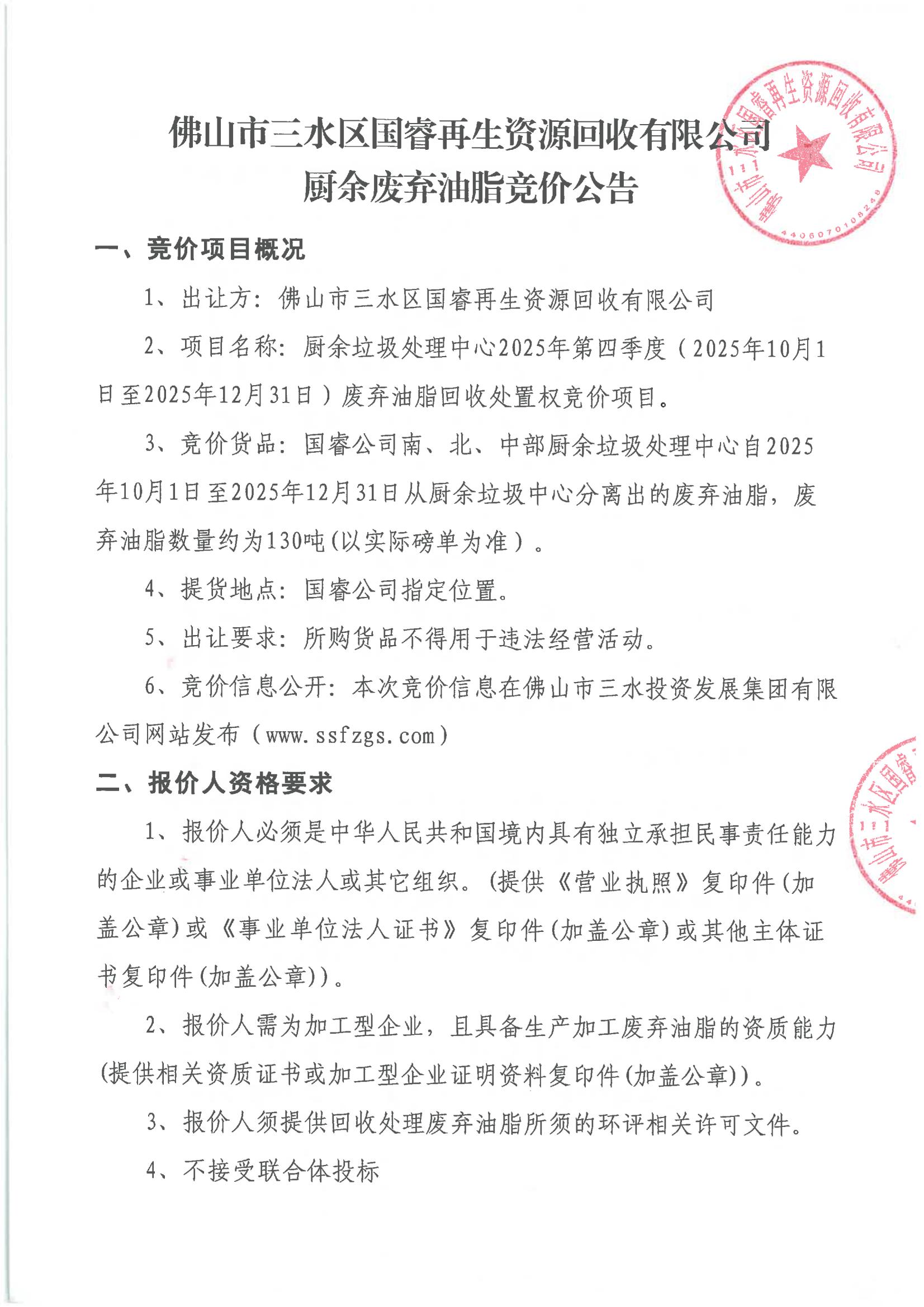 附件3:国睿废弃油脂竞价公告(报价人的营业执照复印件)