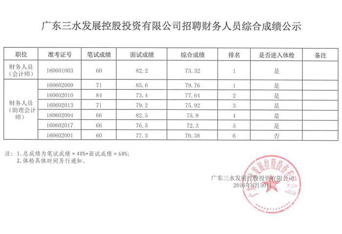 广东PA视讯集团游戏控股投资有限公司招聘财务人员综合成绩公示