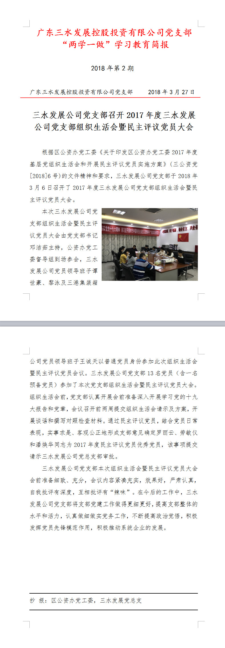 PA视讯集团游戏公司党支部“两学一做”学习教育简报第2期——召开2017年度PA视讯集团游戏公司党支部组织生活会暨民主评议党员大会