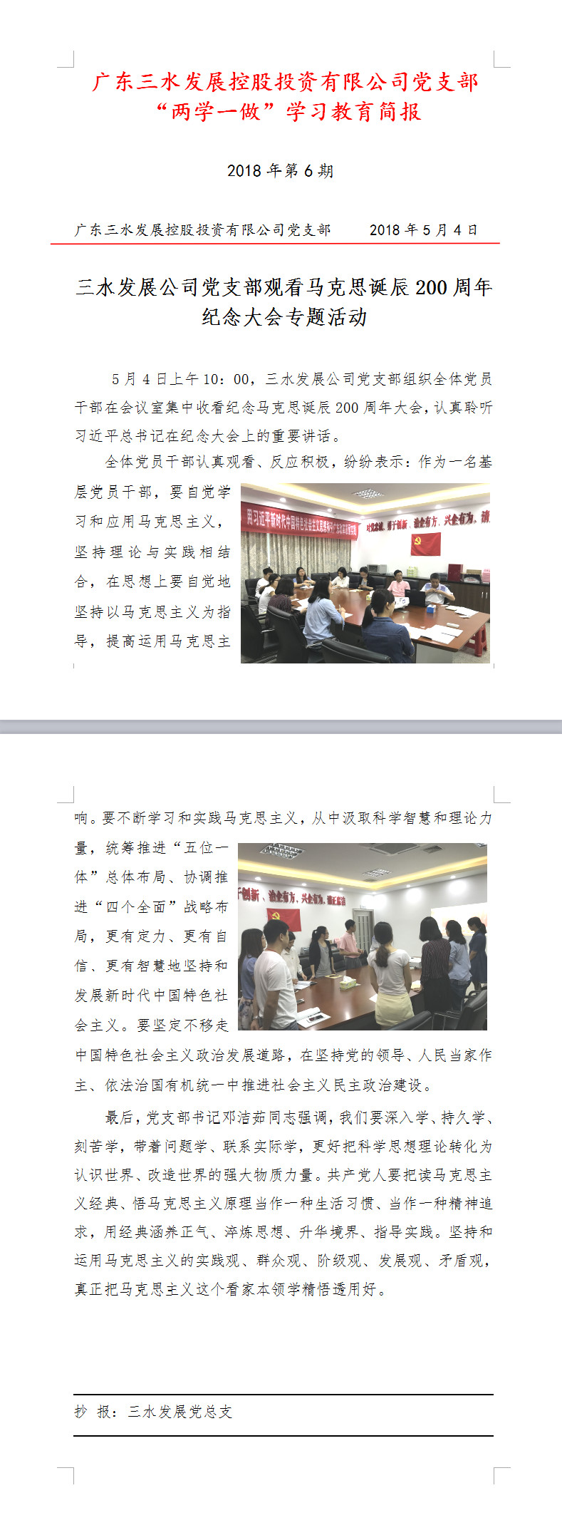 PA视讯集团游戏公司党支部“两学一做”学习教育简报第6期——观看马克思诞辰200周年纪念大会专题活动