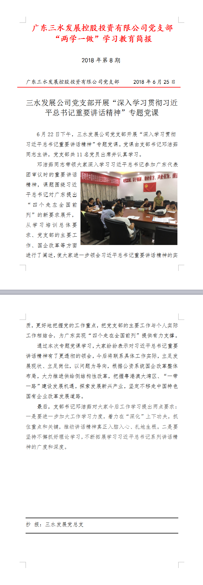 第8期简报20180622(深入学习贯彻习近平总书记重要讲话精神专题党课)