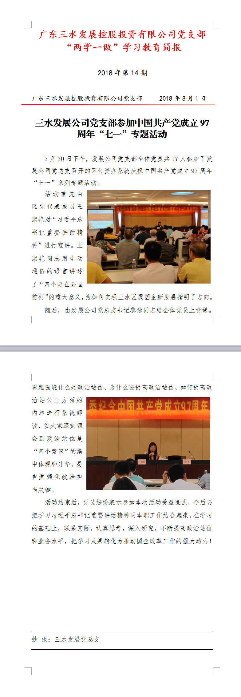 第14期简报20180730(庆祝中国共产党成立97周年“七一”专题活动)