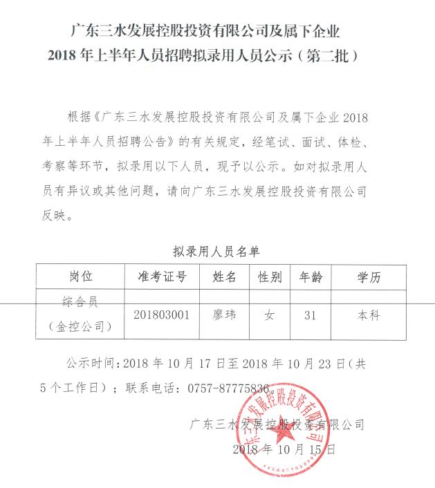 广东PA视讯集团游戏控股投资有限公司及属下企业2018年上半年人员招聘拟录用人员公示(第二批)
