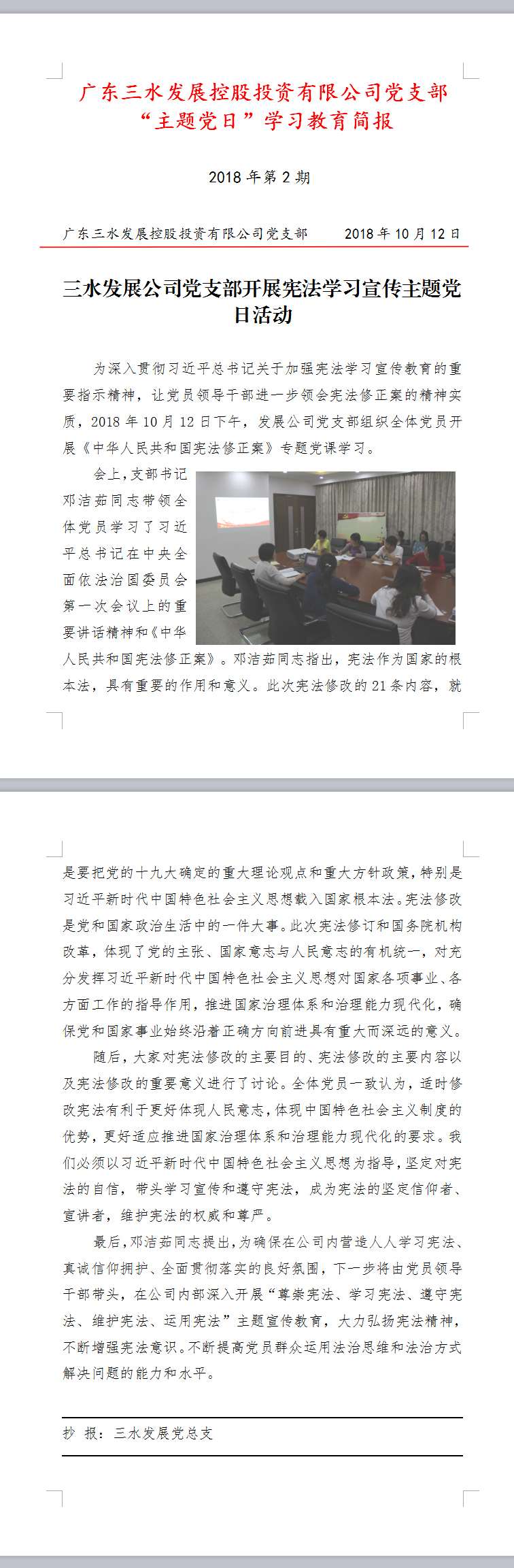 第2期主题党日工作简报20181012(宪法学习宣传专题党课)