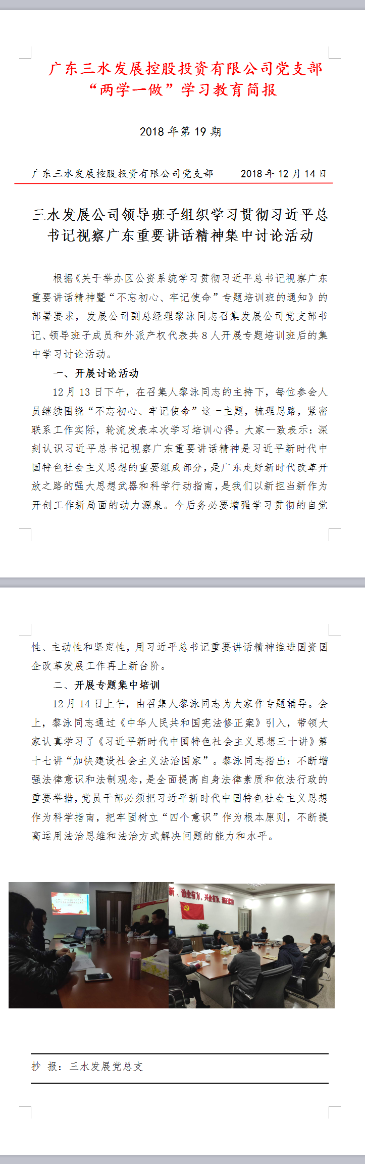 第19期两学一做工作简报20181214(视察广东重要讲话专题讨论)