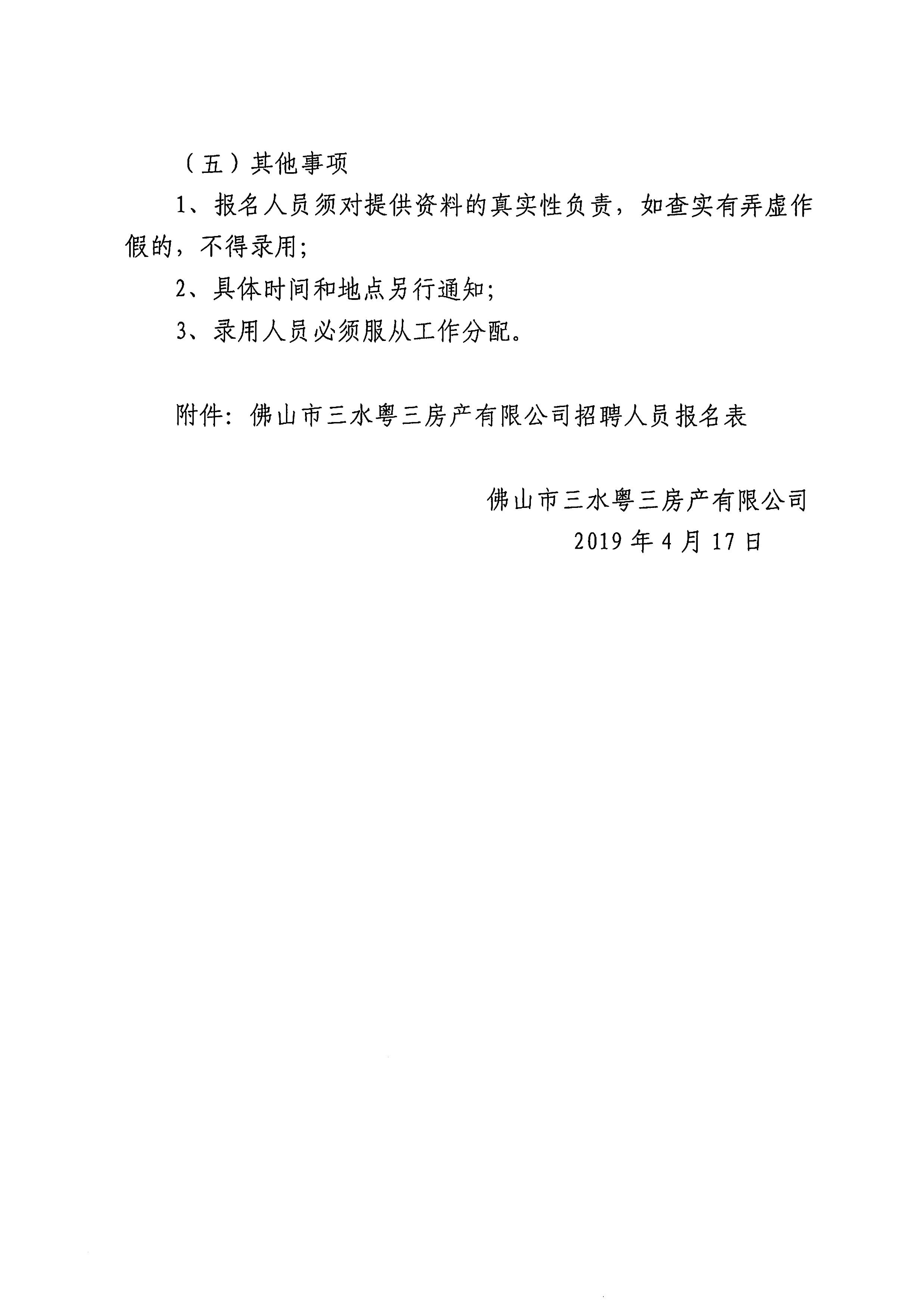 附件:佛山市三水粤三房产有限公司招聘人员报名表