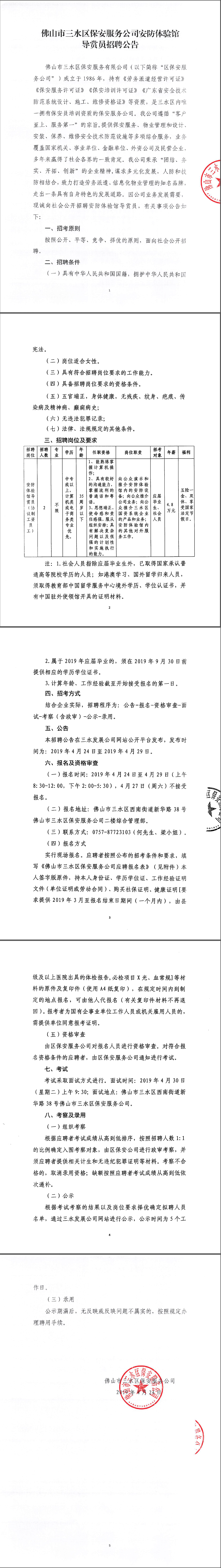佛山市三水区保安服务公司安防体验馆导赏员招聘公告