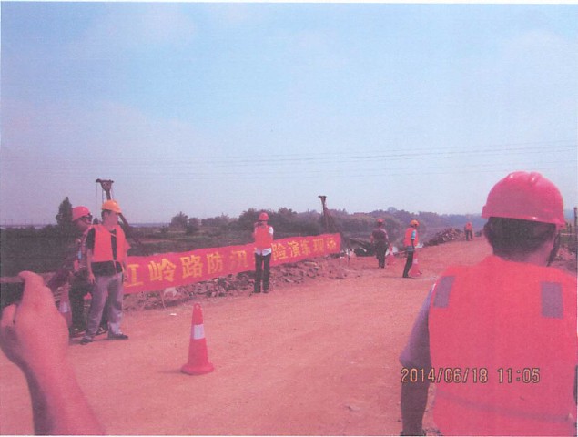 2014年6月18日上午10:00时,区交通投资有限公司在虹岭路南海段西南涌段施工现场的防洪演练正式开始。防洪演练以虹岭路南海段西南涌段施工现场突发洪水,30分钟内水位突破5米为背景,洪水险情出现后,现场安全员马上报告指挥长,指挥长迅速启动《佛山市三水区虹岭路西延线公路工程防汛应急预案》,各抢险小组各就各位,按照应急预案组织人员对现场施工人员实施救援抢险;对施工现场进行打松木桩填沙包围堰抢险;安排施工机械把施工现场的施工设备和材料转移到安全地方等。各抢险小组各司其职、有条不絮,及时排除了险情,保障了施工现场人员和设备的安全,达到了预期的目的和效果。