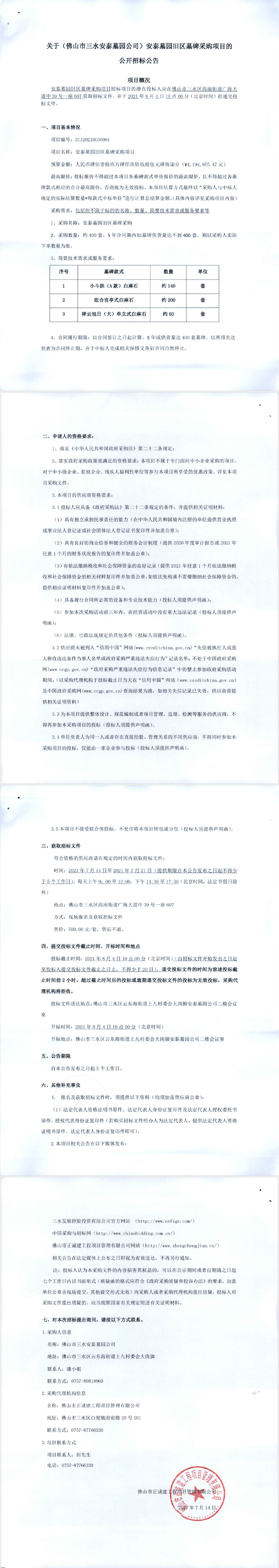 关于(佛山市三水安泰墓园公司)安泰墓园旧区墓碑采购项目的公开招标公告