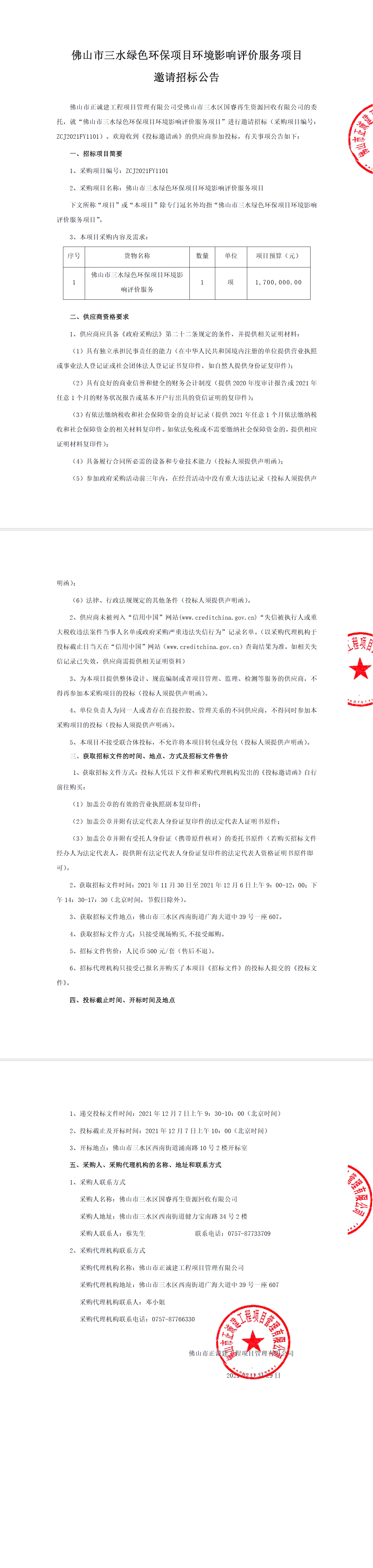 佛山市三水绿色环保项目环境影响评价服务项目邀请招标公告