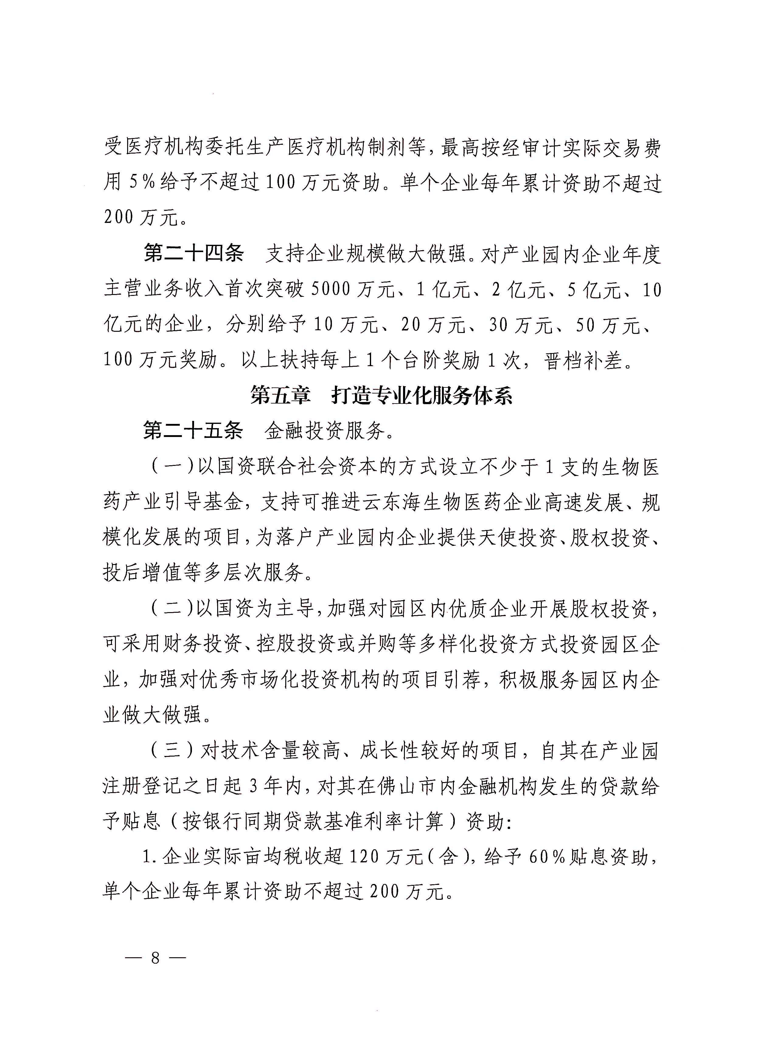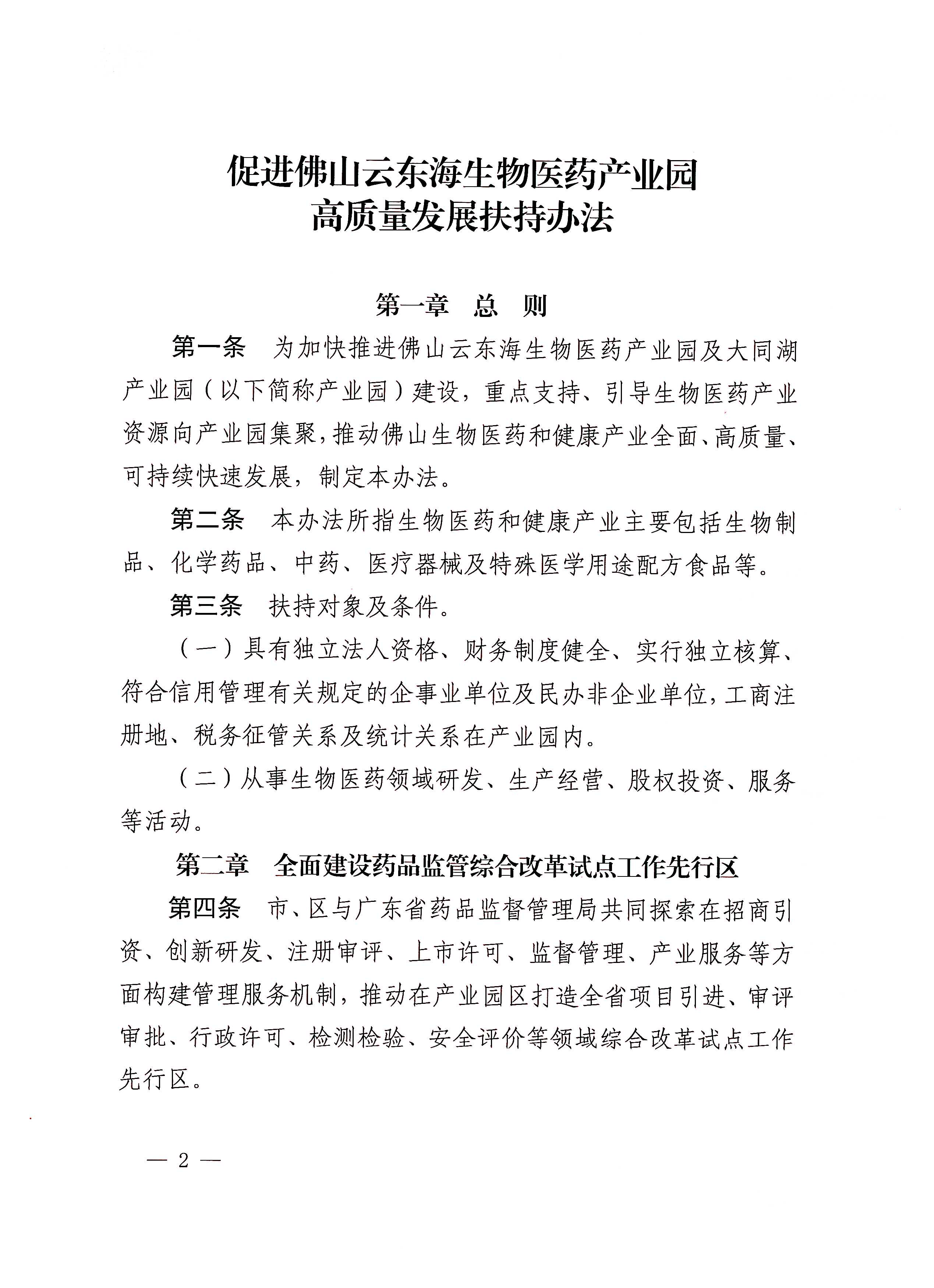 佛山市人民政府关于印发促进佛山云东海生物医药产业园高质量发展扶持办法的通知