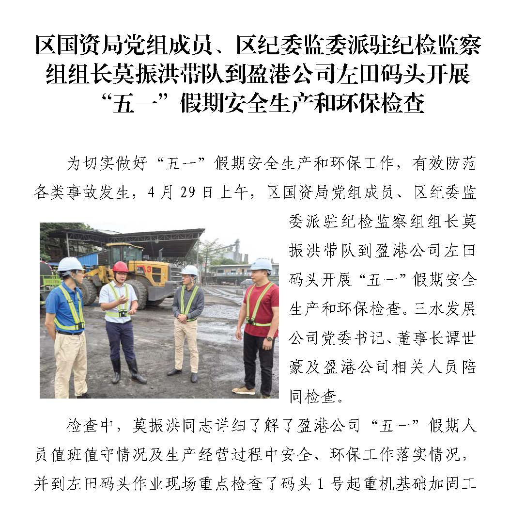 区国资局党组成员、区纪委监委派驻纪检监察组组长莫振洪带队到盈港左田码头开展“五一”安全生产和环保检查