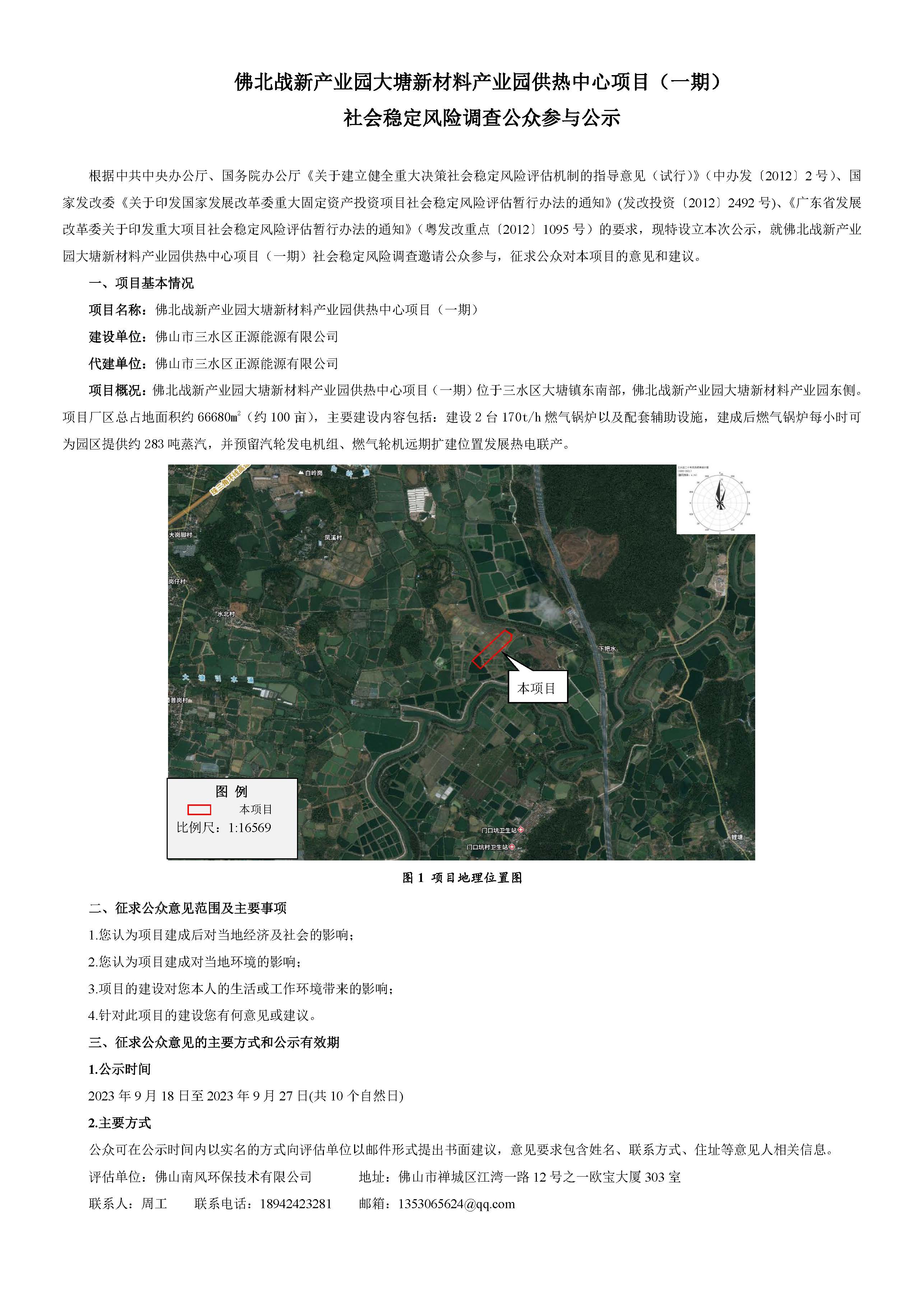 佛北战新产业园大塘新材料产业园供热中心项目(一期)社会稳定风险调查公众参与公示