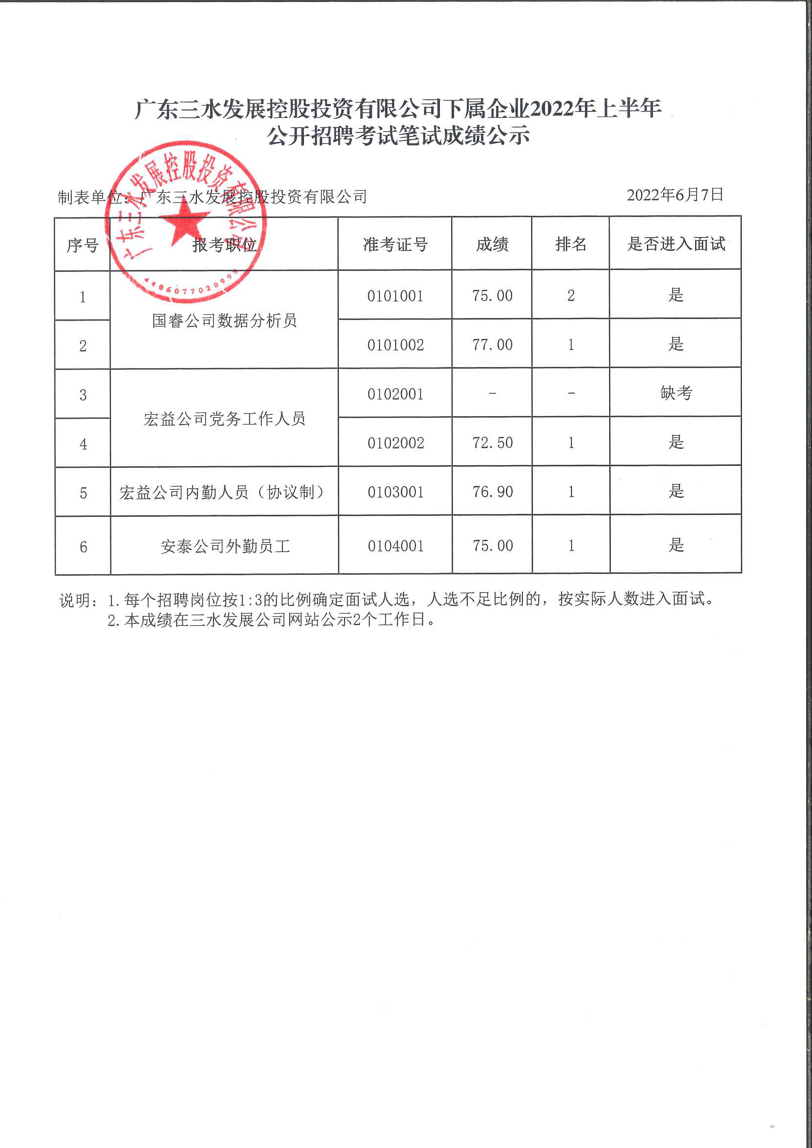 广东PA视讯集团游戏控股投资有限公司下属企业2022年上半年公开招聘考试笔试成绩公示
