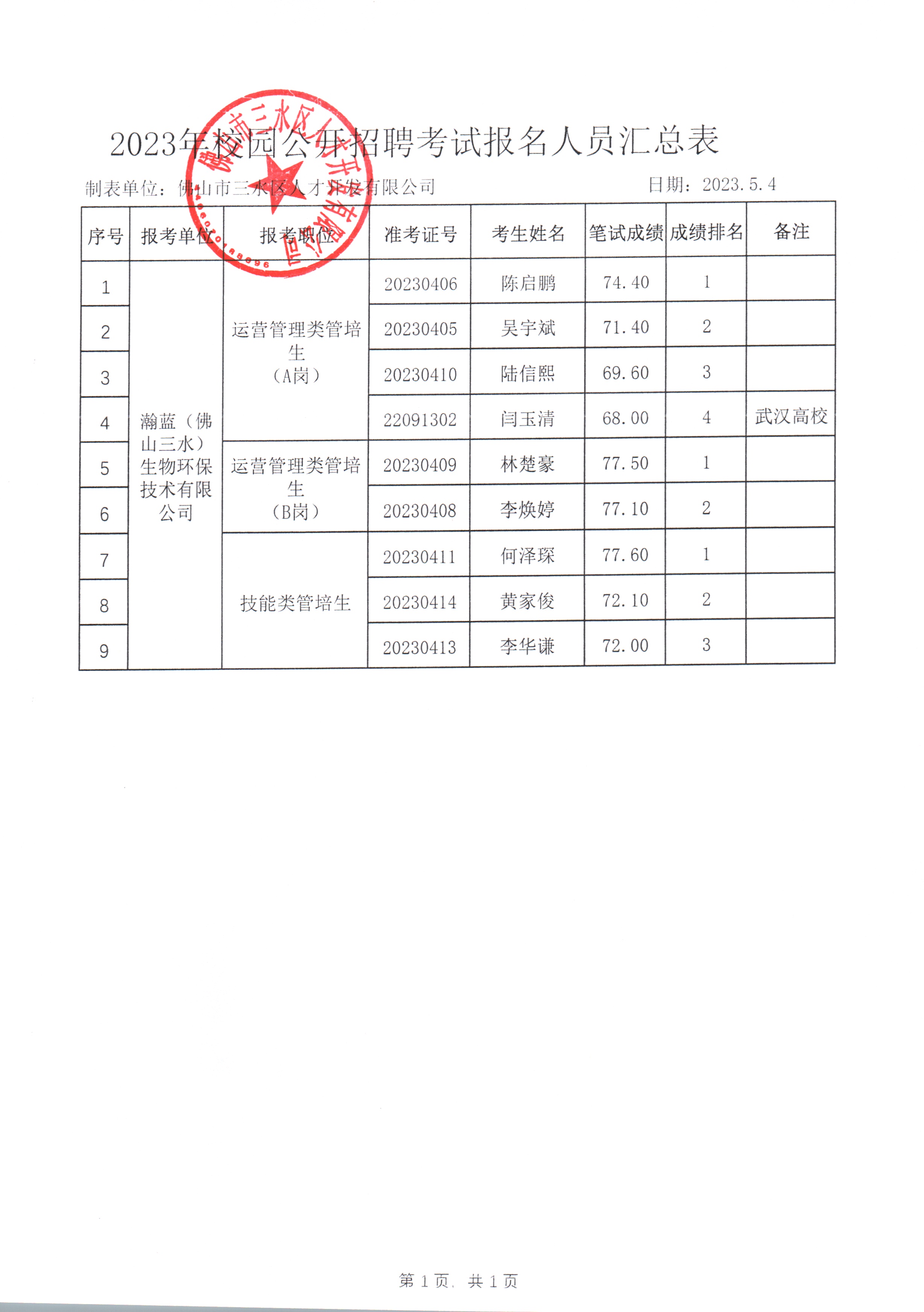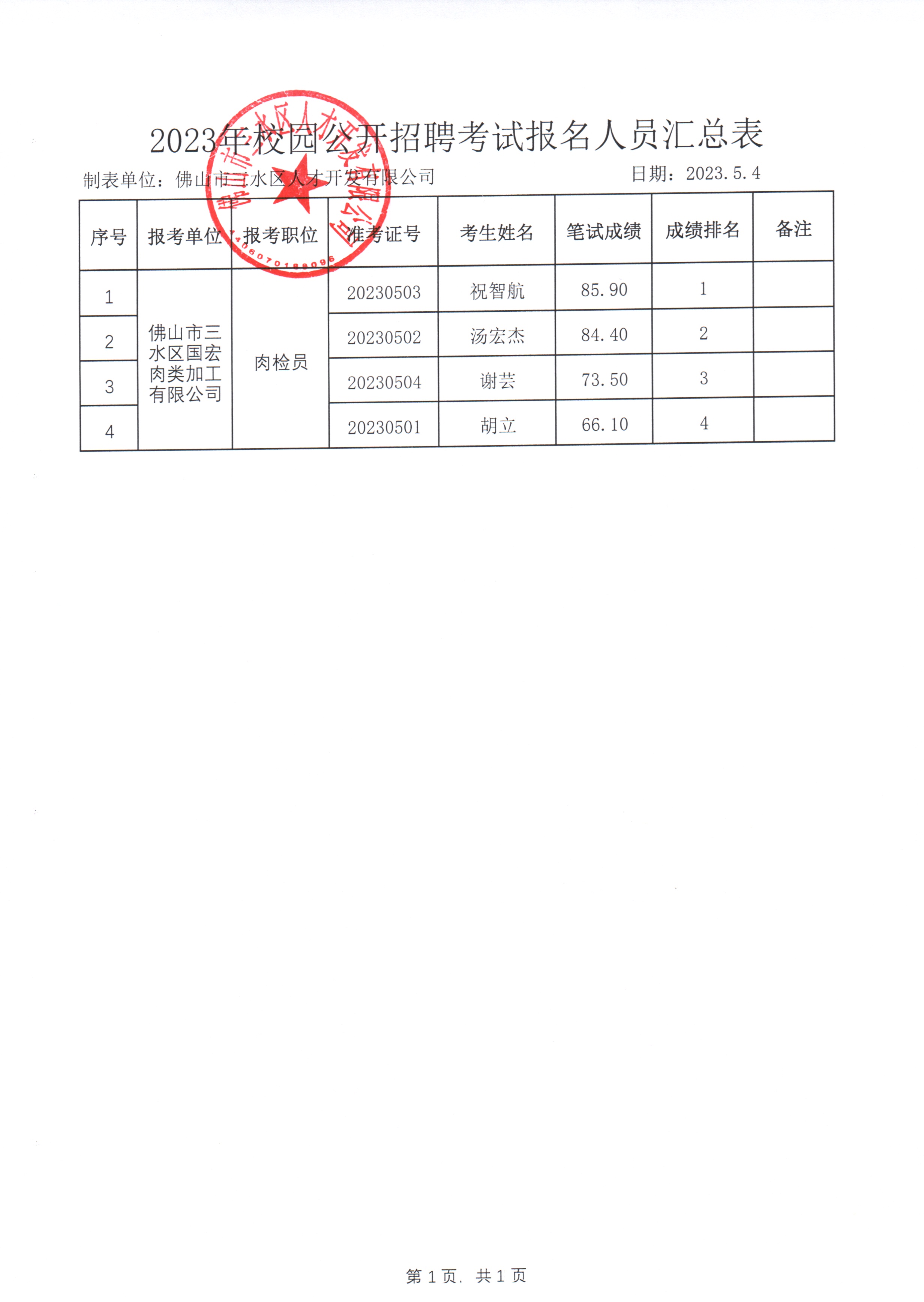 笔试成绩 |