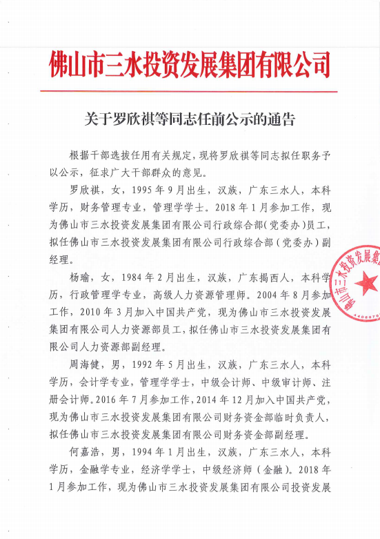 关于罗欣祺等同志任前公示的通告