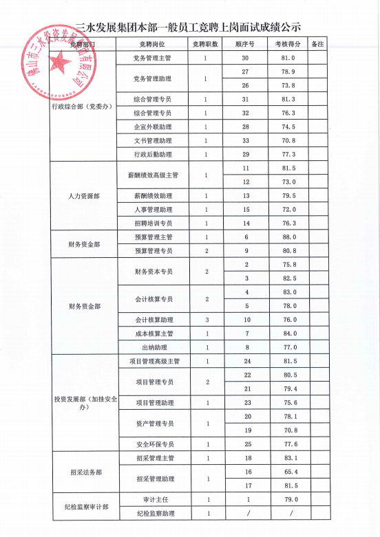 PA视讯集团游戏集团本部一般员工竞聘上岗面试成绩公示