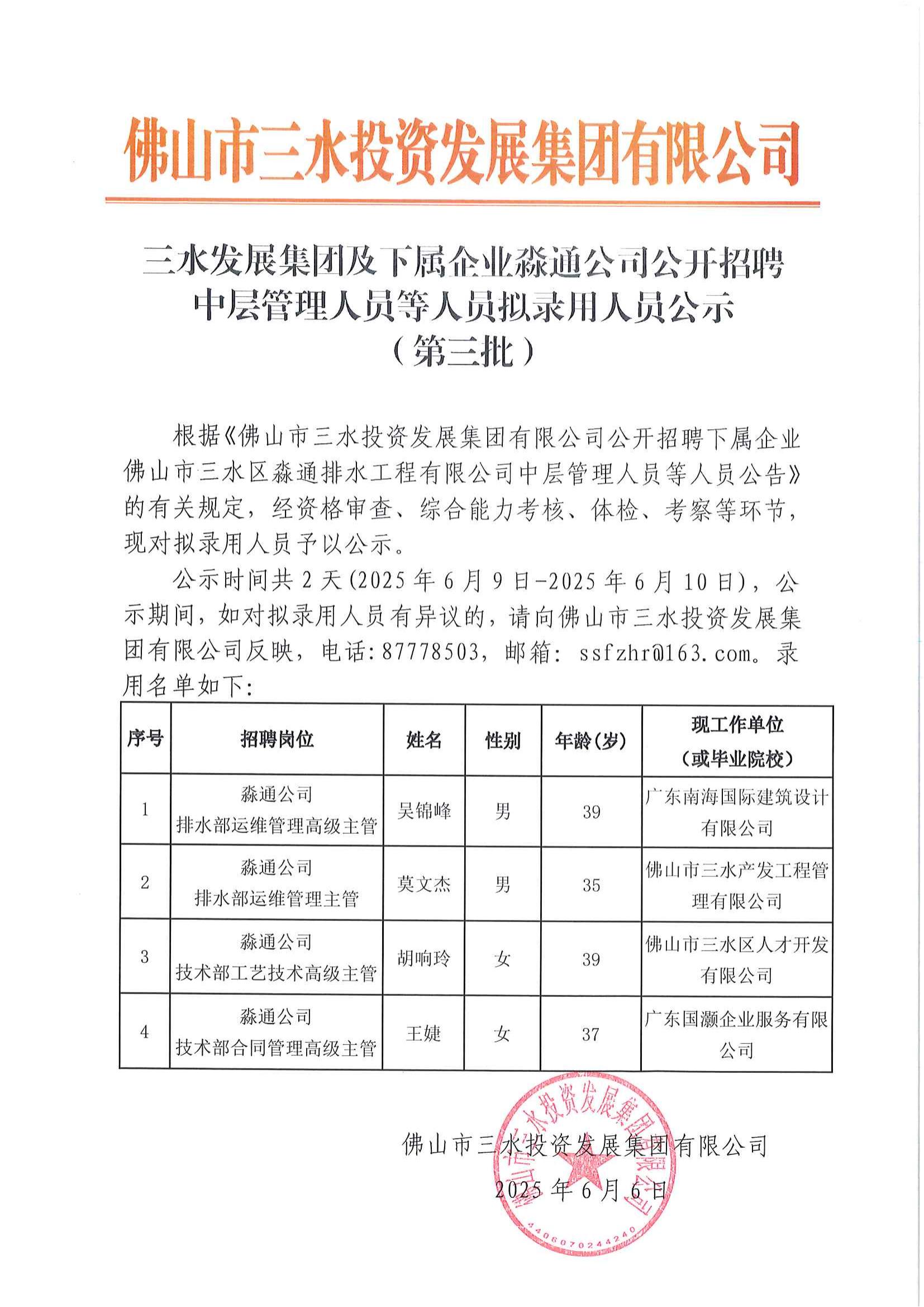 PA视讯集团游戏集团及下属企业淼通公司公开招聘中层管理人员等人员拟录用人员公示 (第三批)
