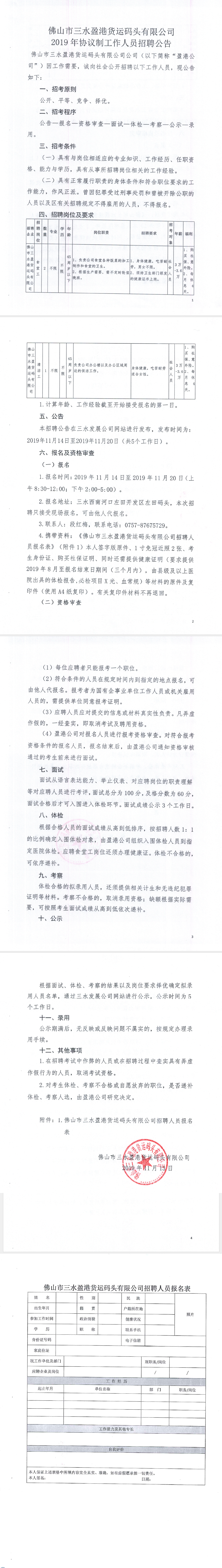 佛山市三水盈港货运码头有限公司2019年协议制工作人员招聘公告