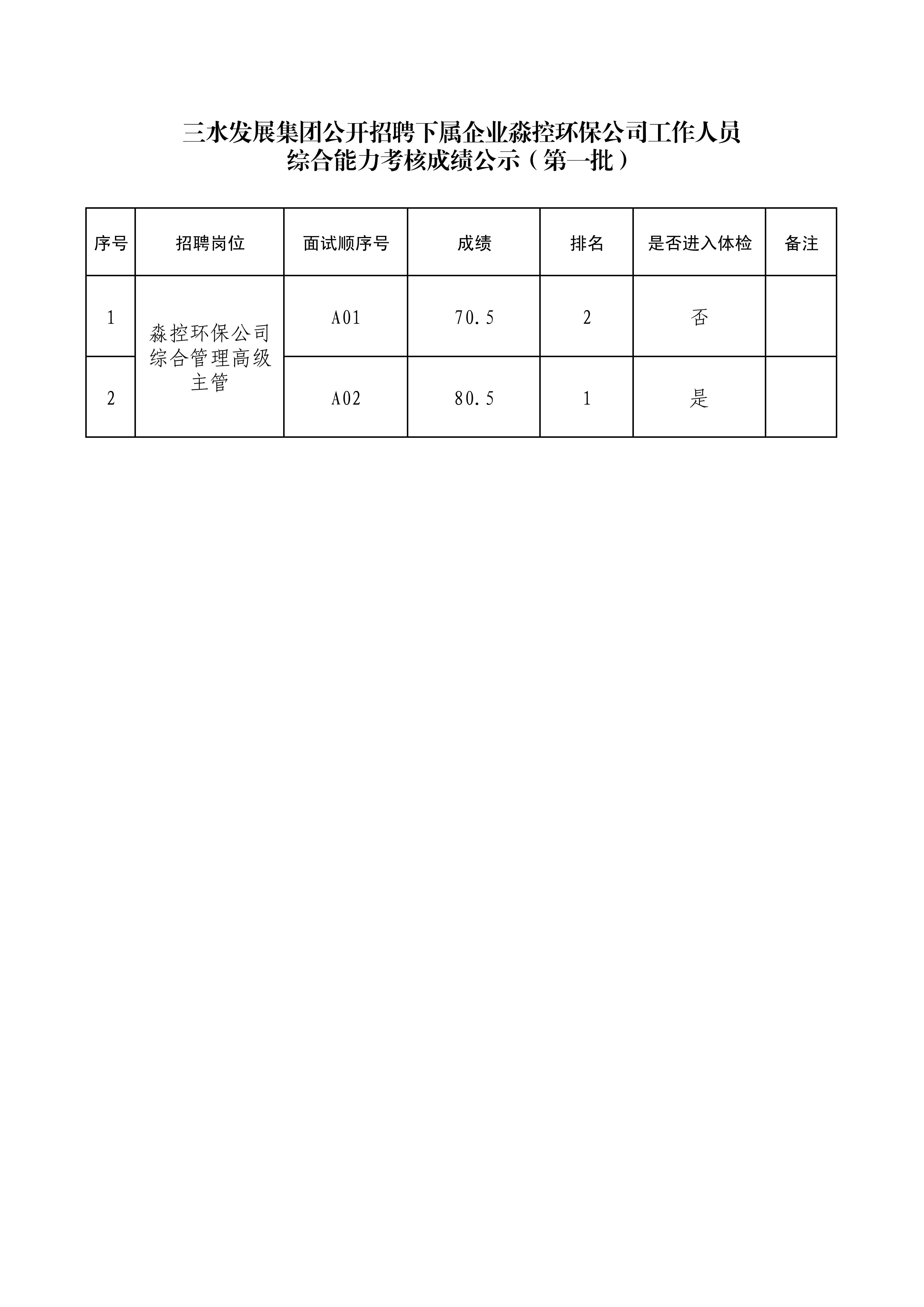 PA视讯集团游戏集团公开招聘下属企业淼控环保公司工作人员综合能力考核成绩公示(第一批)