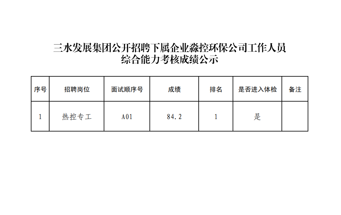 PA视讯集团游戏集团公开招聘下属企业淼控环保公司工作人员综合能力考核成绩公示