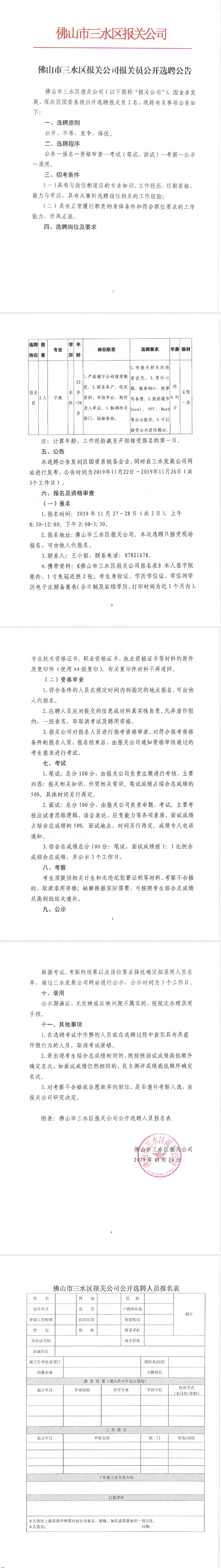 附件2-佛山市三水区报关公司公开选聘人员报名表