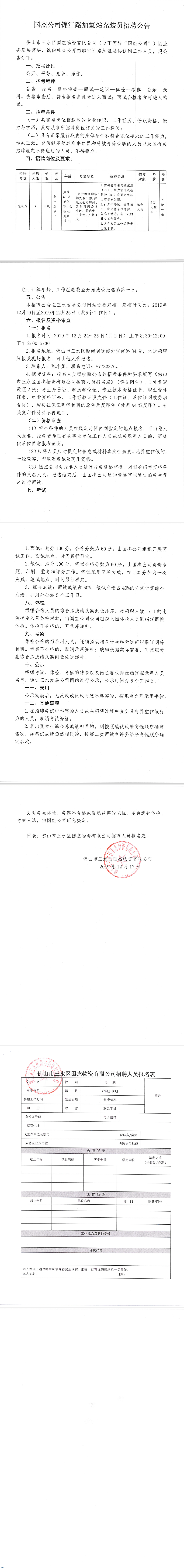 国杰公司锦江路加氢站充装员招聘公告