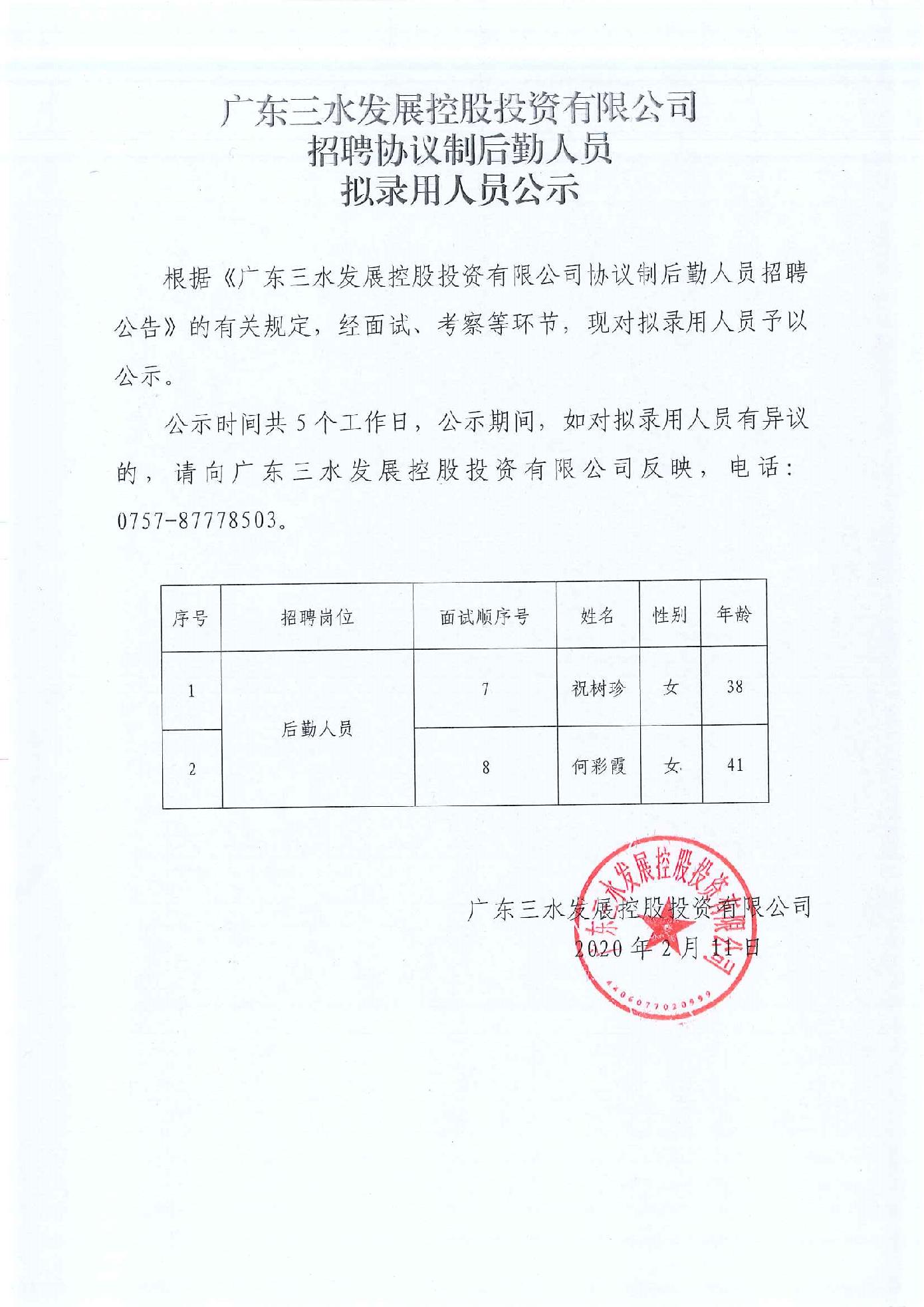 广东PA视讯集团游戏控股投资有限公司招聘协议制后勤人员拟录用人员公示