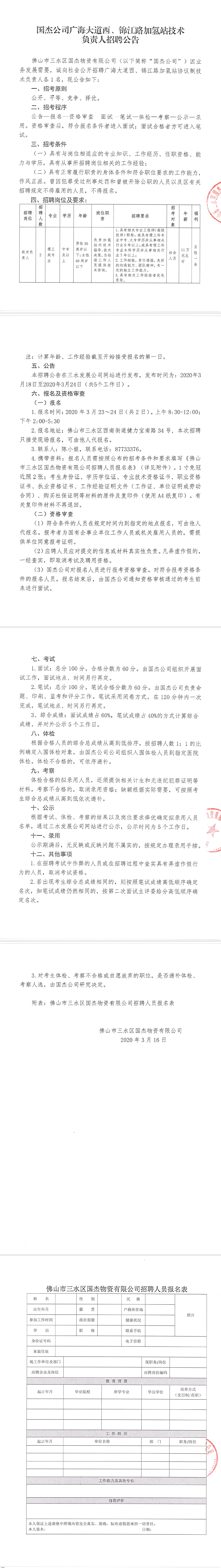 国杰公司2020年广海大道西、锦江路加氢站协议制技术负责人招聘公告