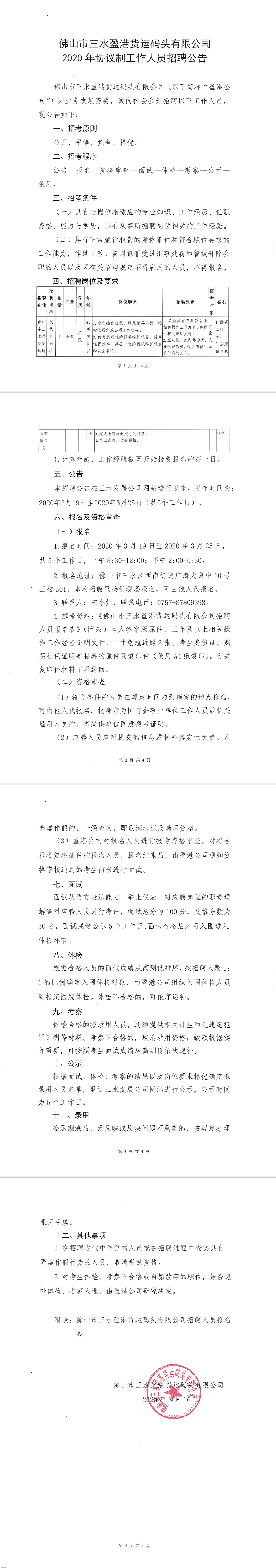 佛山市三水盈港货运码头有限公司2020年协议制工作人员招聘公告