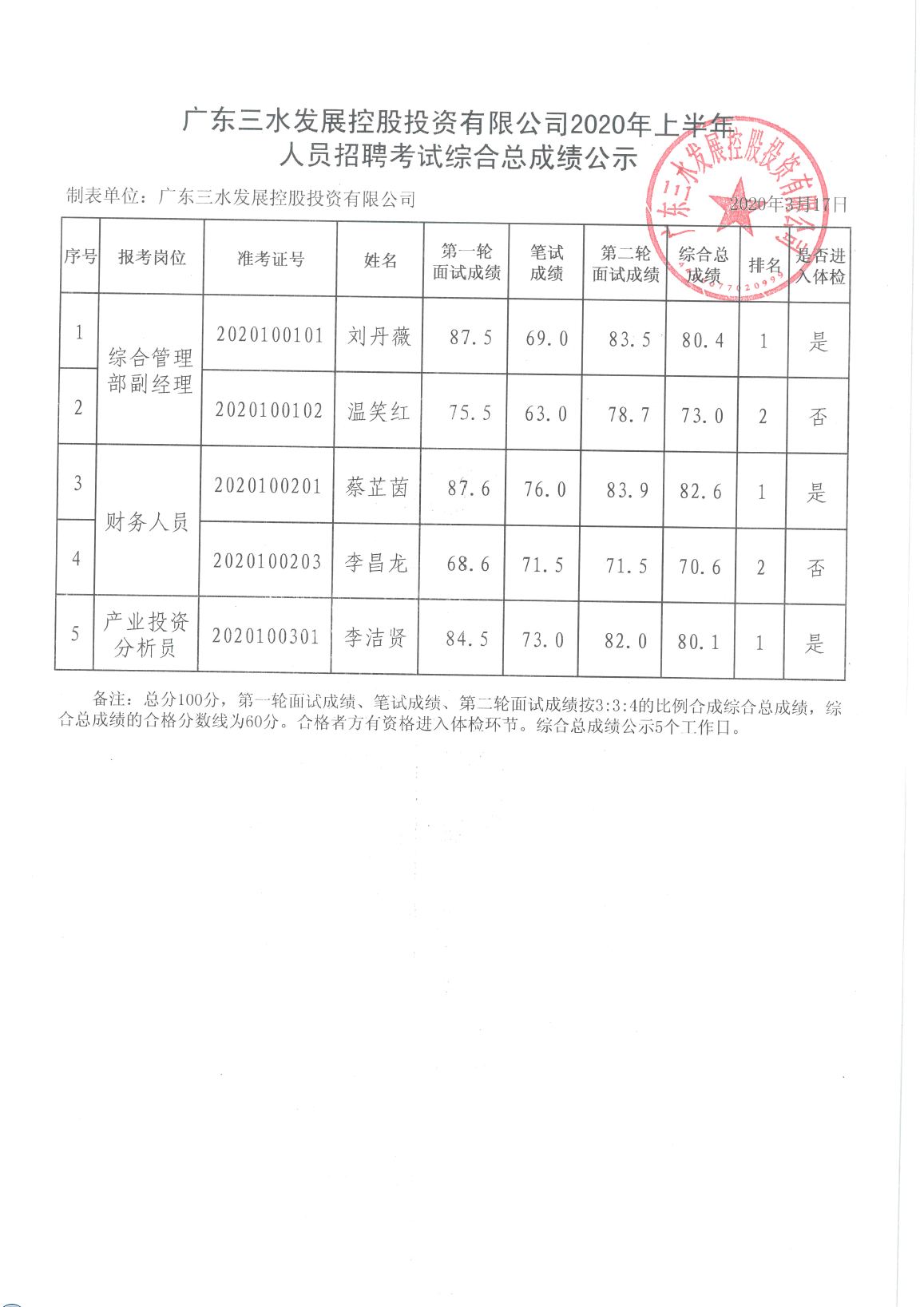 广东PA视讯集团游戏控股投资有限公司2020年上半年人员招聘考试综合总成绩公示