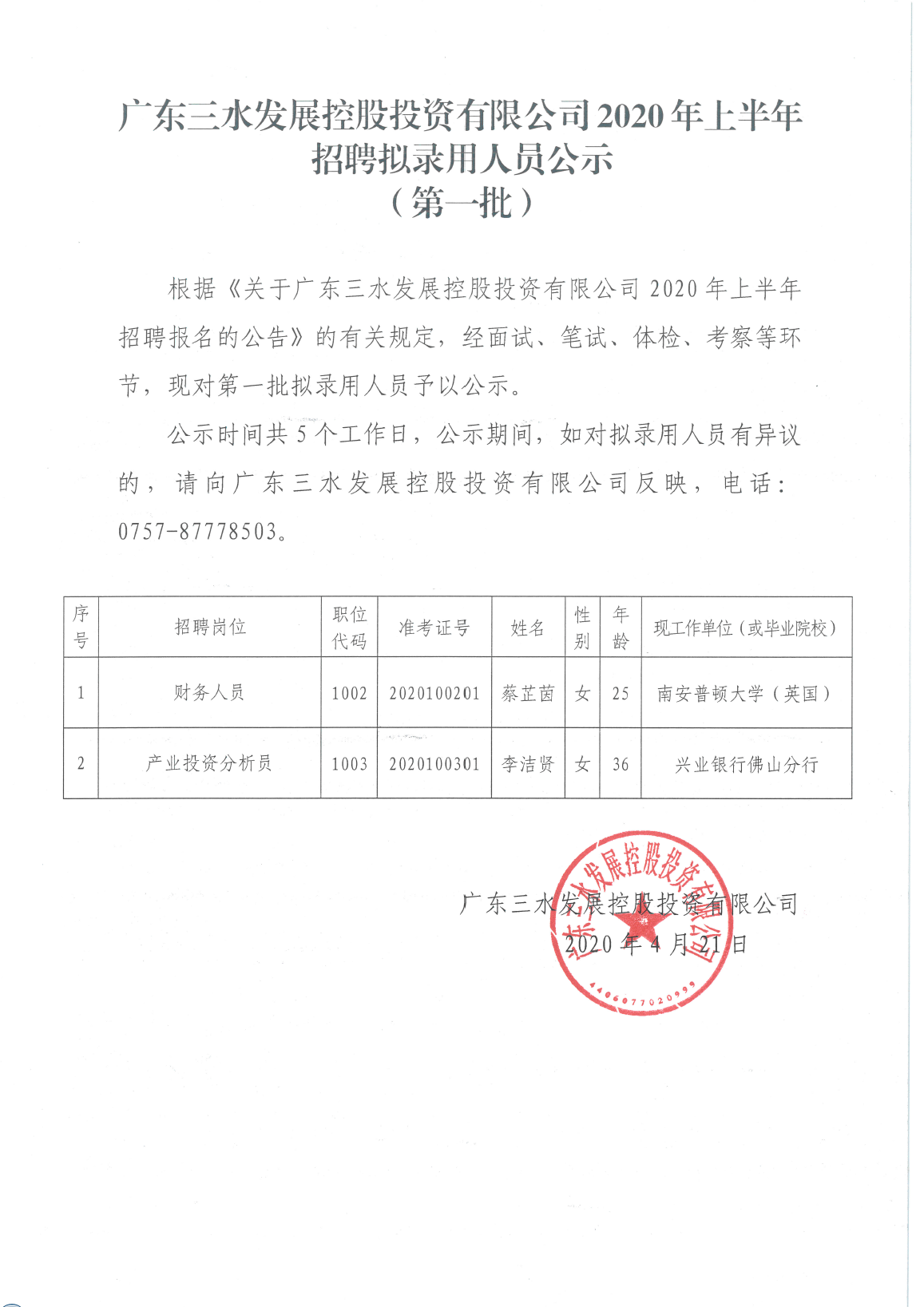 广东PA视讯集团游戏控股投资有限公司2020年上半年招聘拟录用人员公示(第一批)